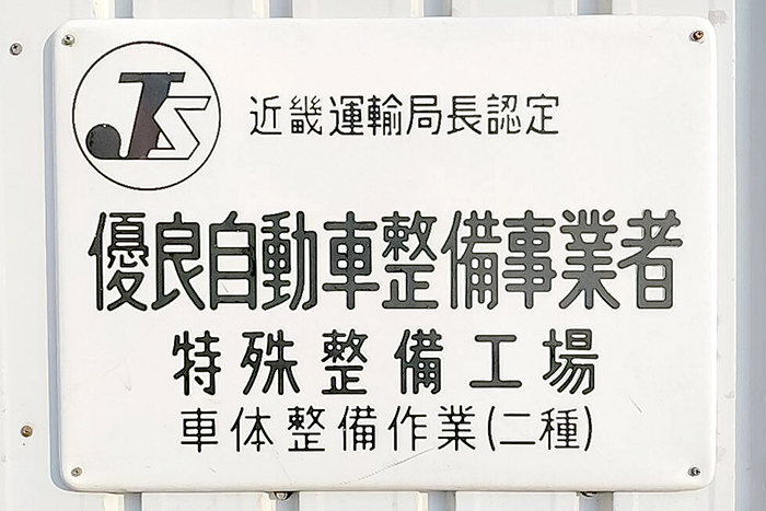 近畿運輸局長の認定をうけた鈑金・塗装工場です。